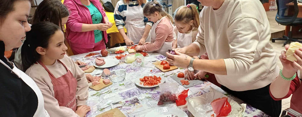 During our weekly cooking workshop, our international volunteers lent a helping hand once again. After playing some fun games together, they joined the children in preparing delicious mini pizza puffs - which everyone enjoyed eating together with great appetite!